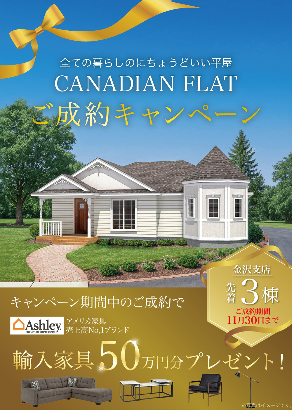 2025年11月30日(日)まで | カナディアンフラットご成約キャンペーン開催! |